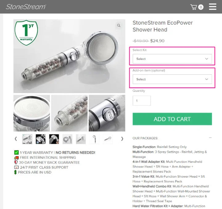 Pour choisir votre pommeau de douche, cliquez sur l'un des boutons « ACHETER MAINTENANT » du site Web ouCliquez ici.