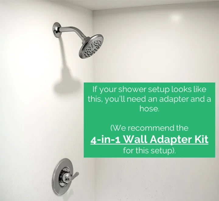 Si vous n'avez pas de tuyau et de support Pour notre pommeau de douche, nous recommandons l'achat de le « kit adaptateur mural 4 en 1 ».Si vous souhaitez simplement un pommeau de doucheIl vous suffit de choisir entre notre modèle monofonction et notre modèle multifonction.
