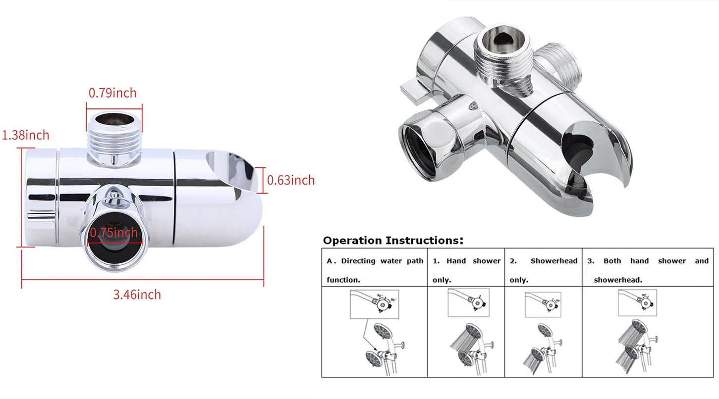 Inverseur de douche à 3 voies, chrome